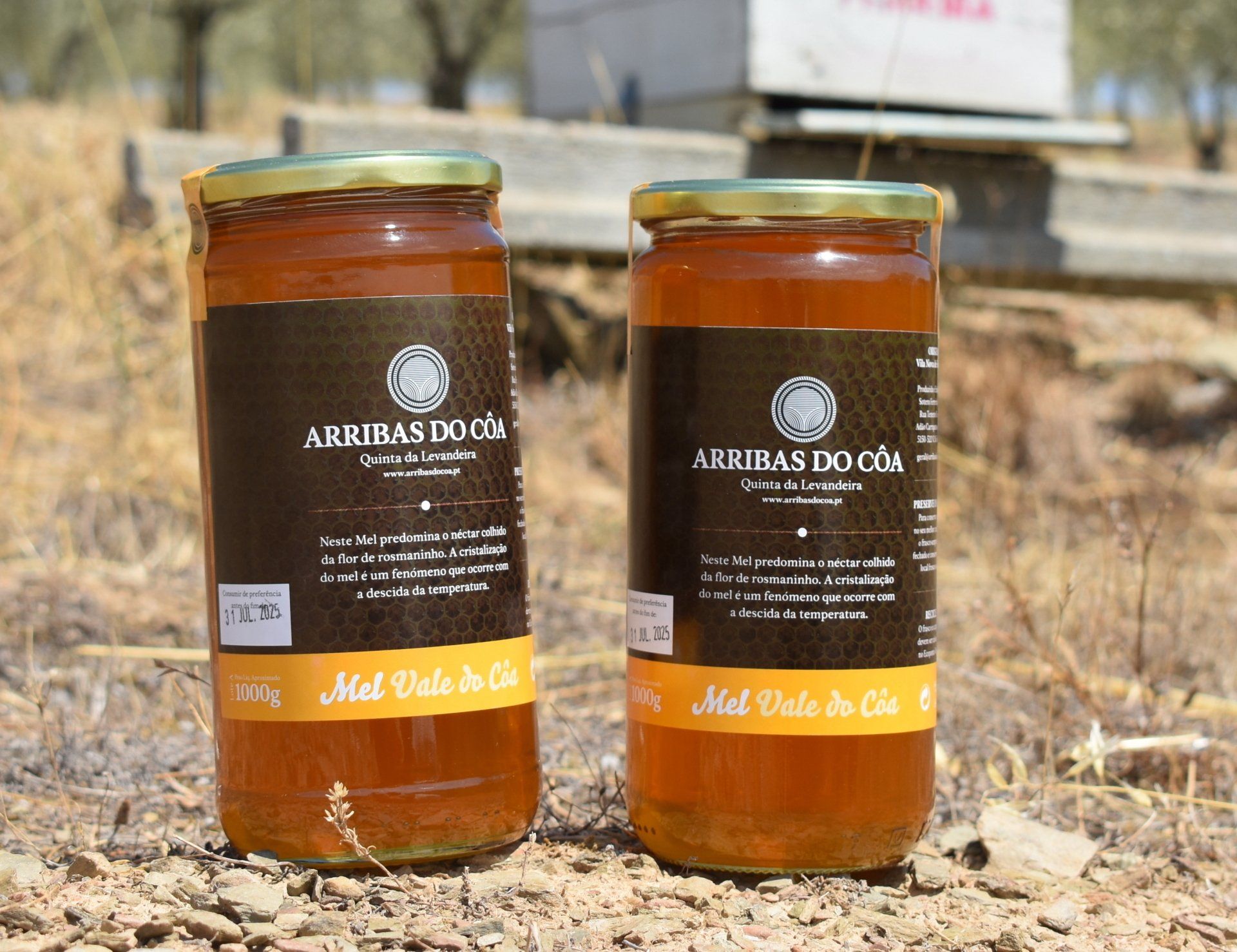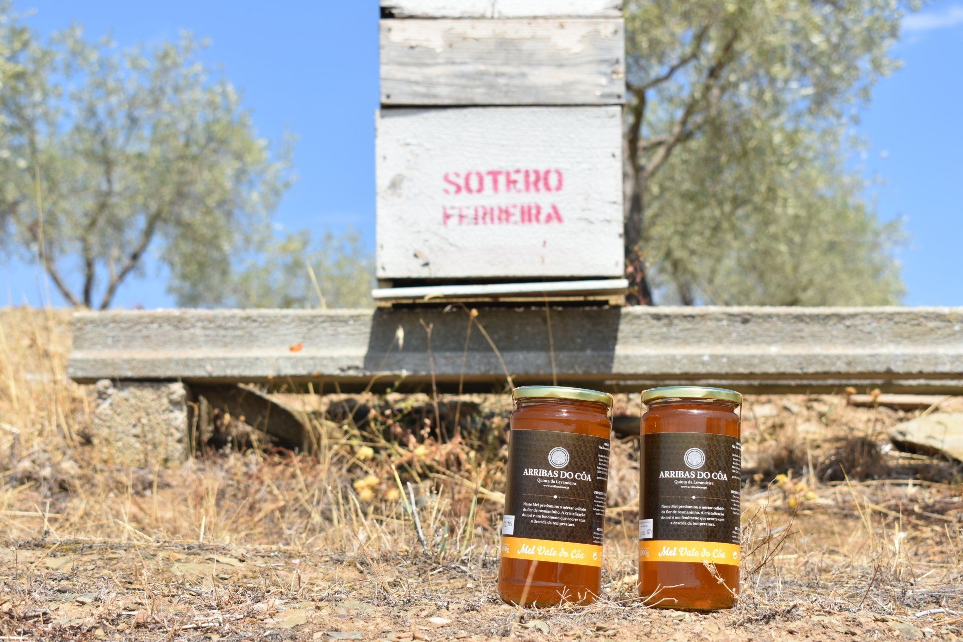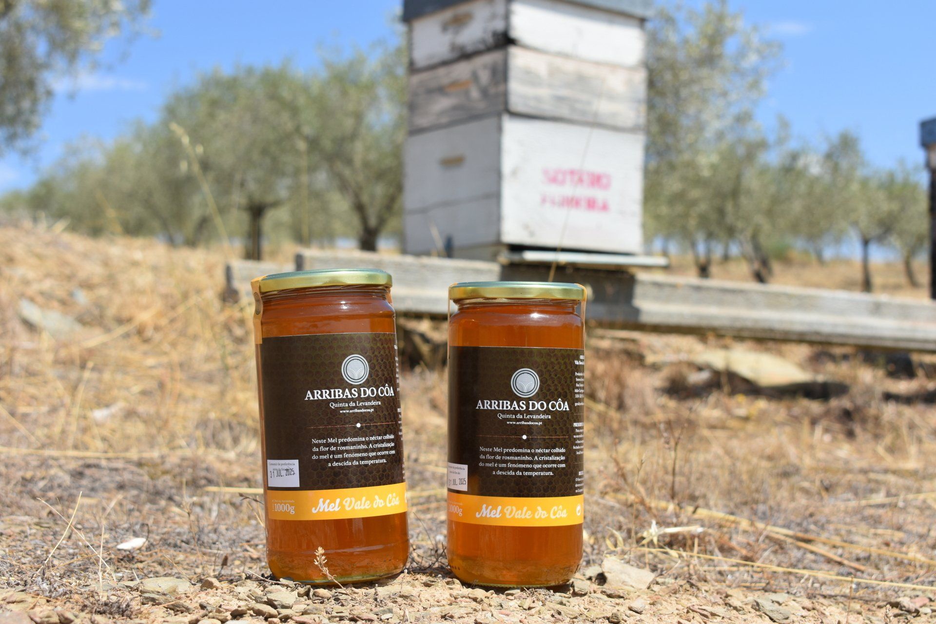 Integrado no seio dos campos de vinha, olival e amendoal estão as colmeias onde é produzido o Mel Arribas do Côa.